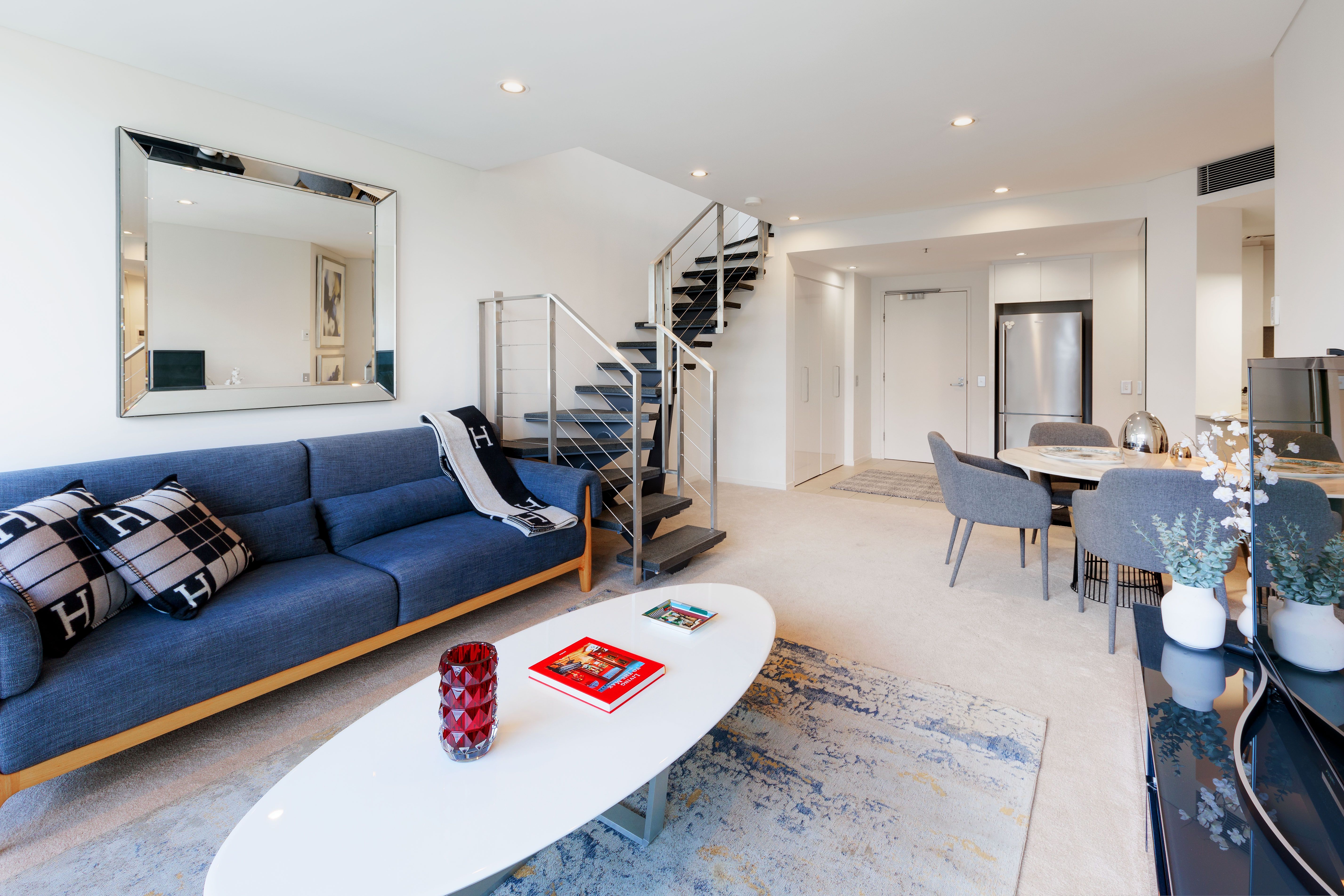 Imbued with all the legendary hallmarks of the Ikon building, this deluxe 2-level, 1-bedroom apartment sings with sophistication and style, offering a superb haven in one of Potts Points best addresses. Standing as a unique offering as one of only 2 such dual-level 1-bed abodes in the building and boasting an impressive 88sqm (approx.) scale combined with harbour-view balcony and parking, this is an impressive executive home. The lower level presents a sunlit living/dining area flowing to the balcony with CBD skyline vista and views to the harbour, whilst the modern kitchen boasts Miele gas cooking and stone benches. The upper zone meanwhile unveils as an incredibly expansive full-floor bedroom zone, with walk-in and b/in robes, huge ensuite, large picture window framing those fantastic views, and ample space for a study/office. With quick access to the building's heated pool, spa, and sauna, plus front concierge, this outstanding residence is a prized sanctuary in this iconic address, ready for the astute new owner to take it to its next chapter.