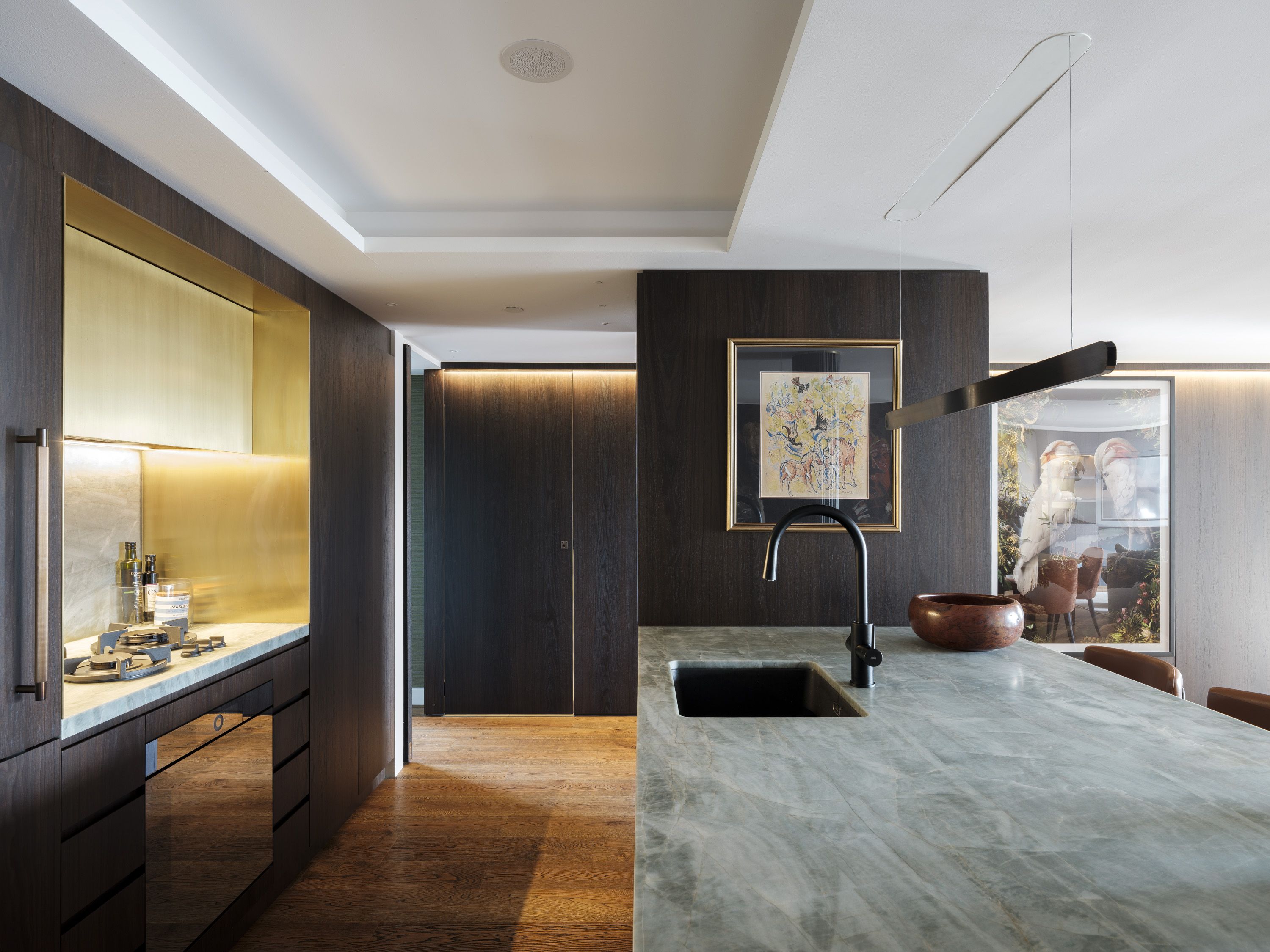The generous living area is complemented by marble countertops, a breakfast bar, and a dining space, creating a refined atmosphere for any occasion. The state-of-the-art kitchen offers the very best in appliances and ample space for preparing meals in style.