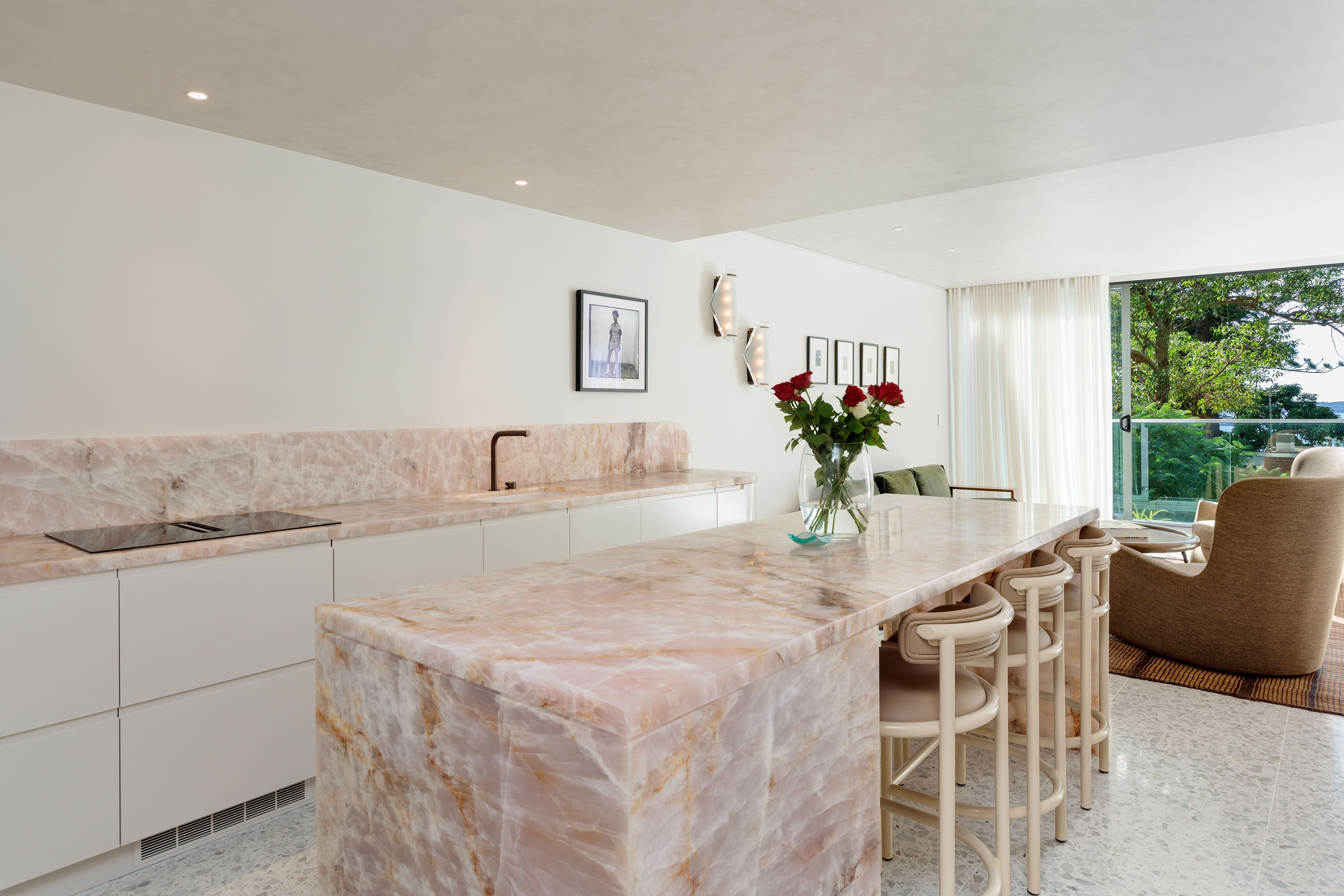 With level access from the building's secure concierge-attended foyer, the home opens to reveal a dazzling sun-soaked space, custom-designed interiors blending with the wide-open NE outlook to present a superb abode, with harbour glimpses. A deluxe kitchen with quartzite island bench flows to a radiant living area and out to the terrace, with the lovely adjacent bedroom zone separated by a custom wool felt room divider. With walk-through robes, this space leads to an interconnected bathroom and discreet laundry, both lavishly appointed.
