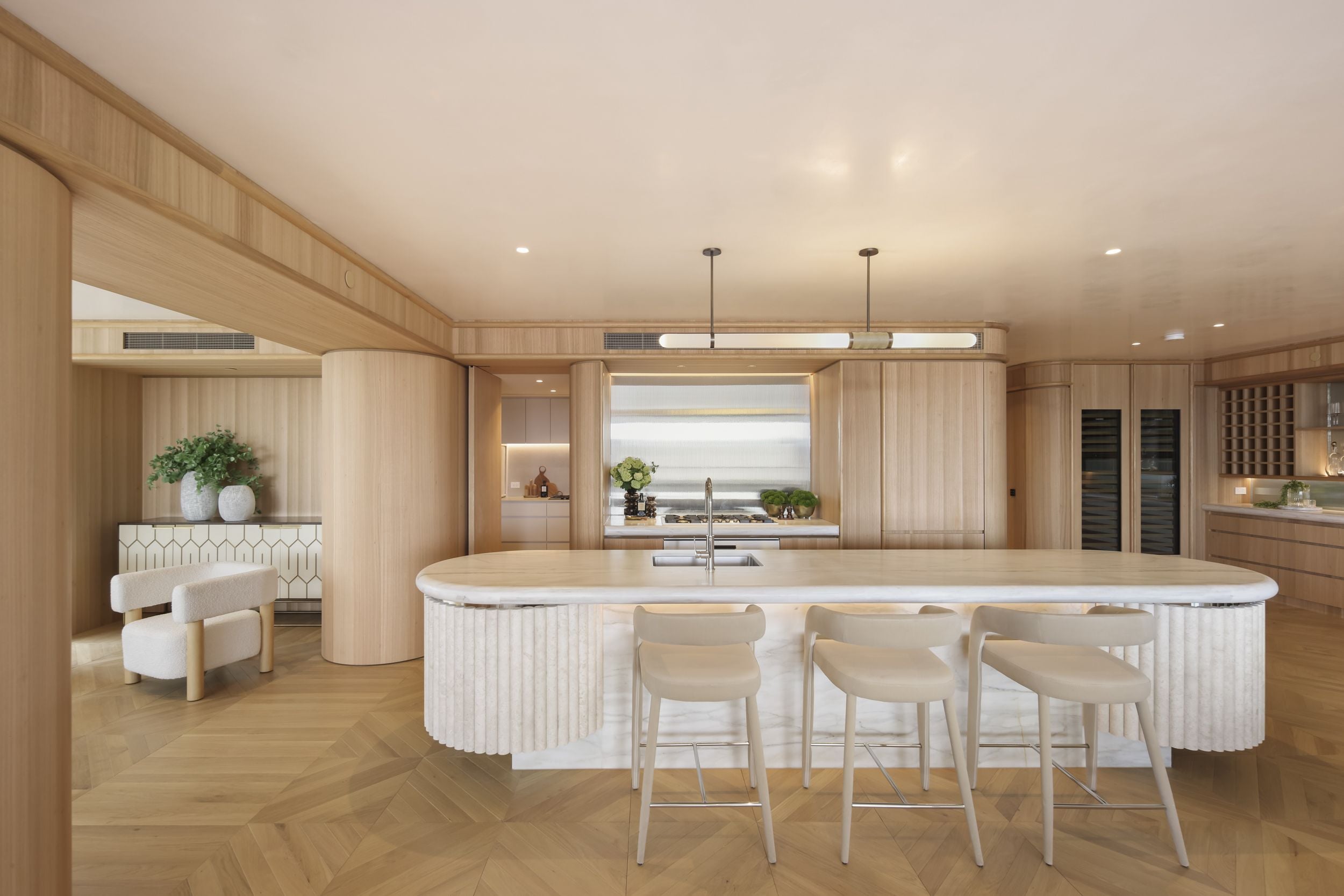 Designed by award-winning architects SJB, Billyard Avenue pays homage to the timeless sophistication of Art Deco and European artistry. Inside, sculptural forms, fluted stone detailing, intricate parquetry flooring and rich marble accents create a residence of depth, texture and presence, Billyard Ave is a home where every finish is bespoke and every proportion grand.