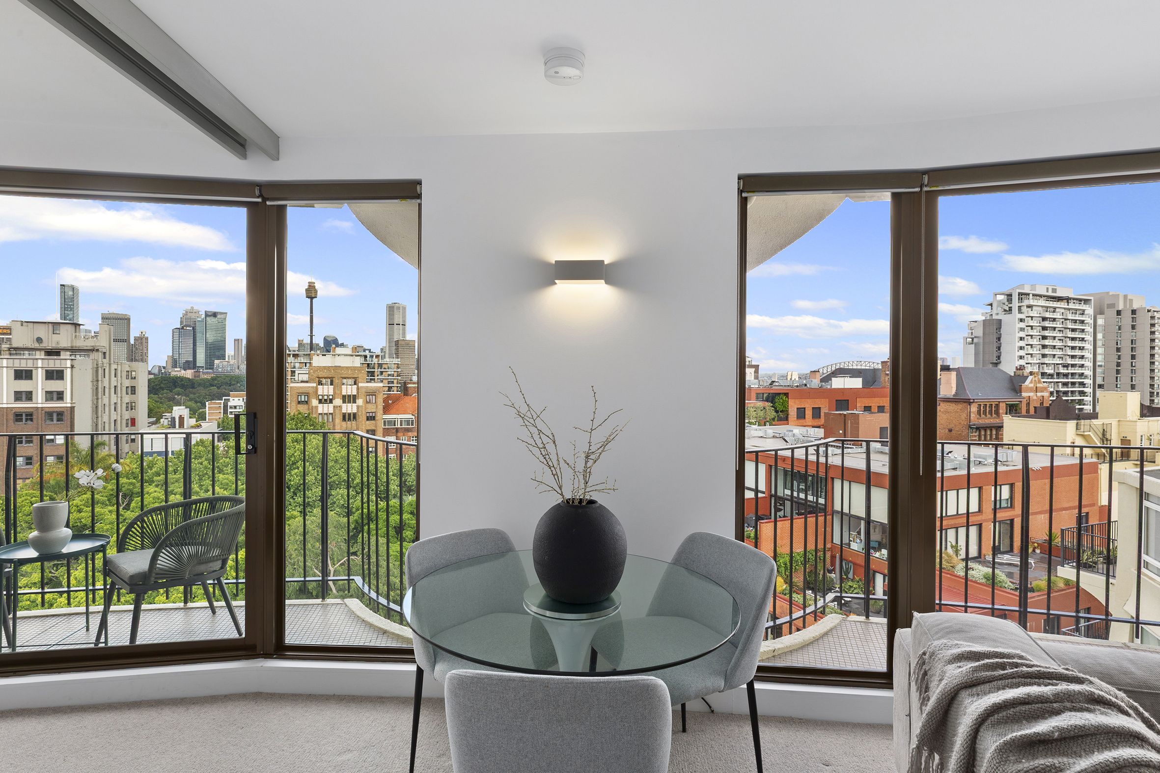 Featuring 2 private balconies and a flowing floorplan filled with N-W sunshine, this newly updated contemporary 56m2 apartment offers indoor/outdoor living with stunning views from all rooms. High above the fashionable enclave, here's a sensational property to live in with lifestyle to match along with lofty views of the Harbour to Manly & CBD skyline including the Sydney Harbour Bridge. Offering creative flair, smart finishes and the quiet exclusivity of a tightly held modern landmark security tower, it's a lift ride to shops, cafes, parks, transport and cosmopolitan Macleay Street.