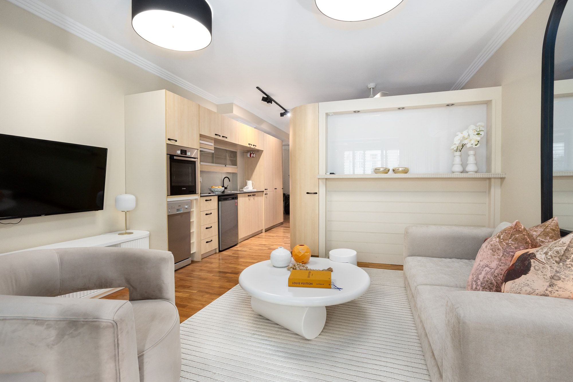 - Open plan living area flows to balcony & dining