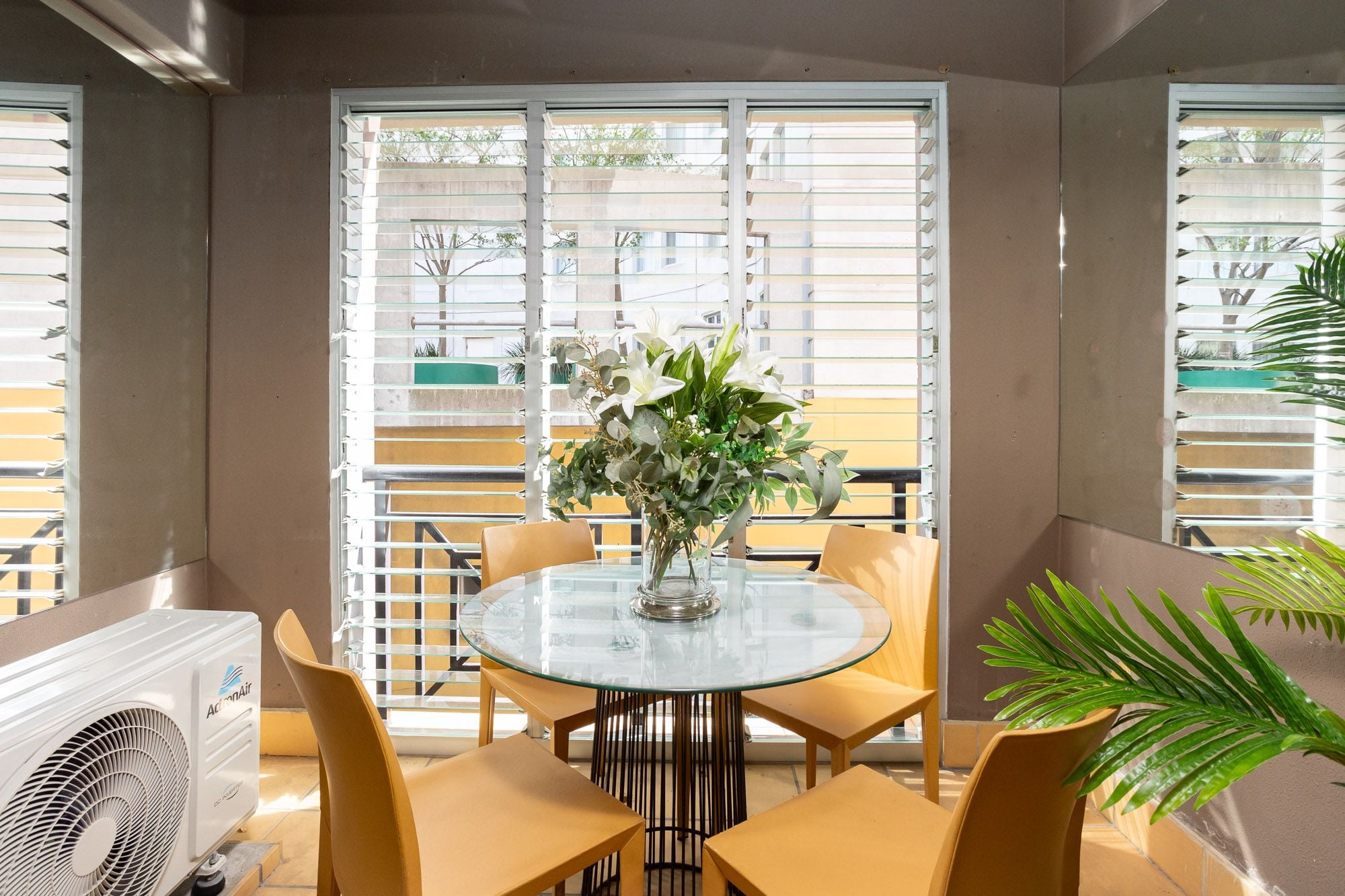 - Enclosed balcony w leafy aspect & louvre windows easily fits 4 dining
