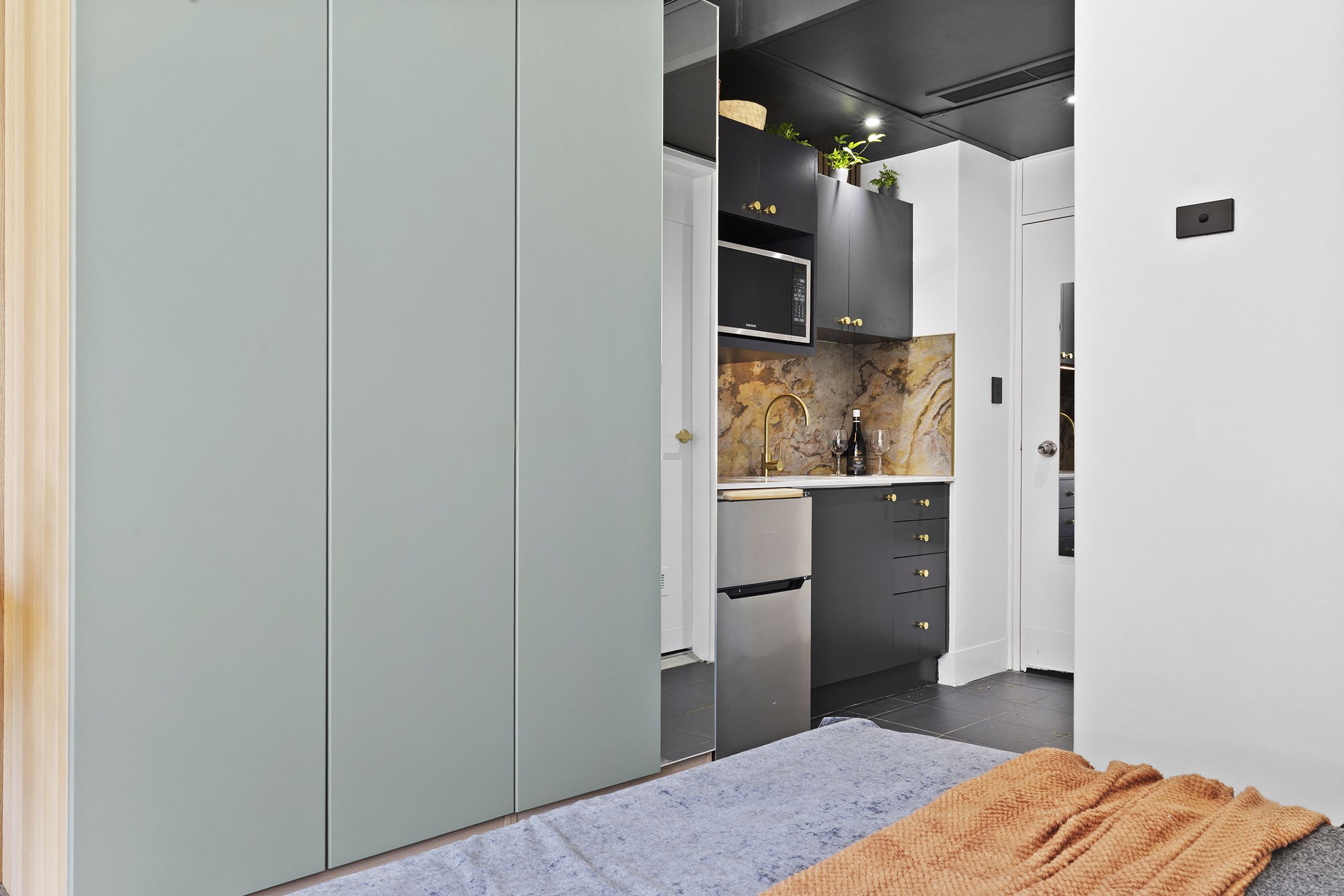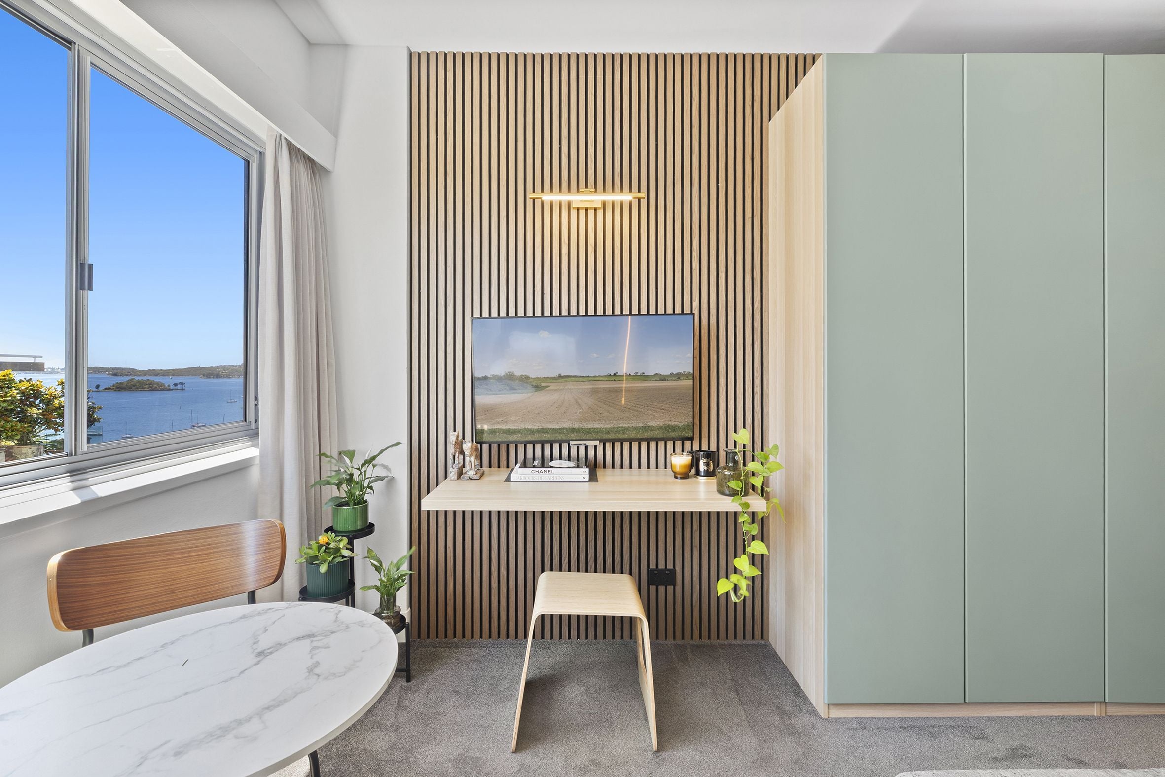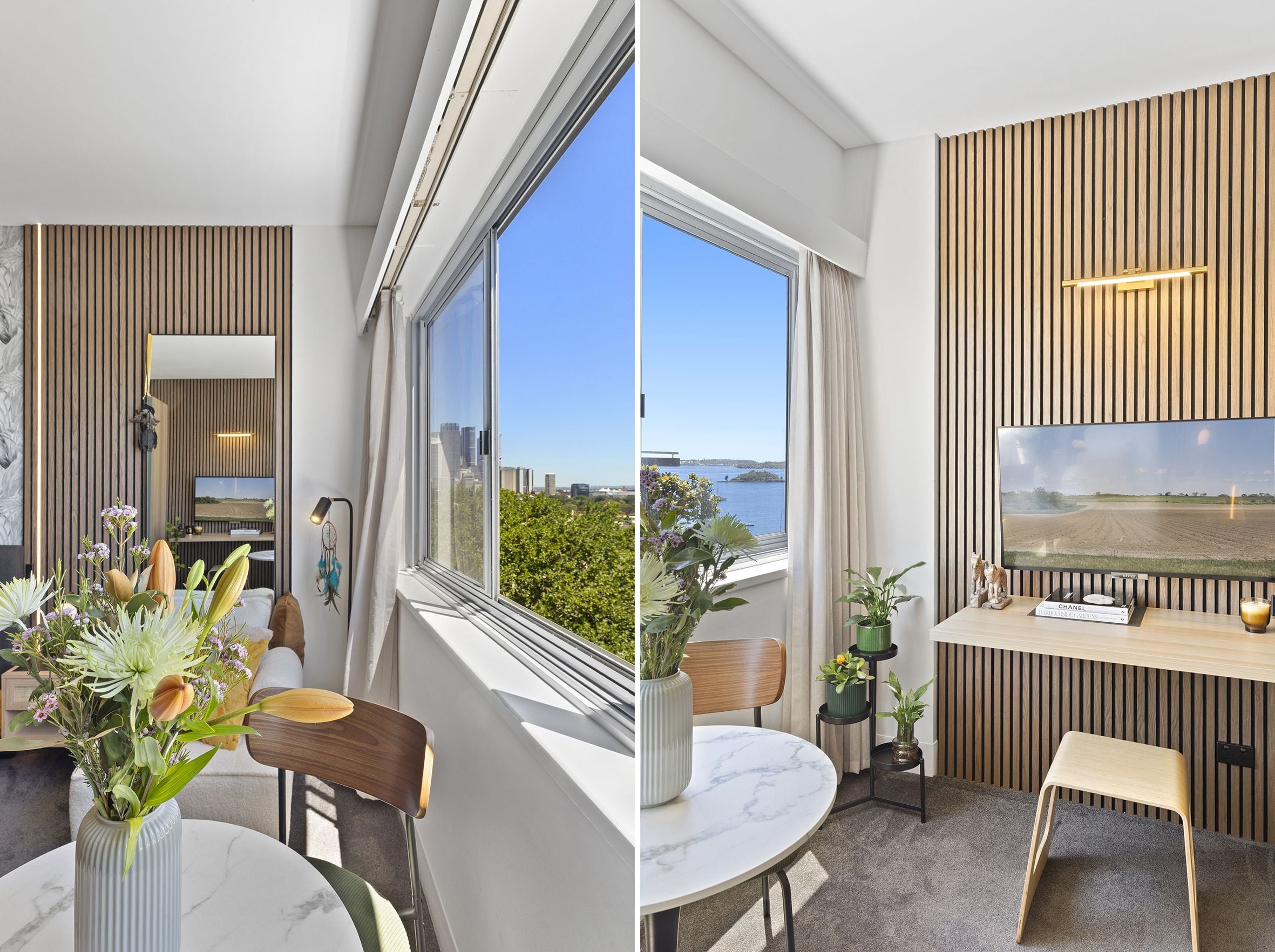 Beautifully renovated and north-facing, this Level 6 studio in The Macleay offers effortless living with exceptional architectural finishes, thoughtful design and refined styling. Enjoy elevated harbour views towards The Heads with Harbour Bridge glimpses, complemented by a modern fitout featuring a stone benchtop, unique stone splashback, ample storage and warm timber panelling. The apartment includes an internal laundry and comes fully set up for Airbnb, ready to operate immediately.