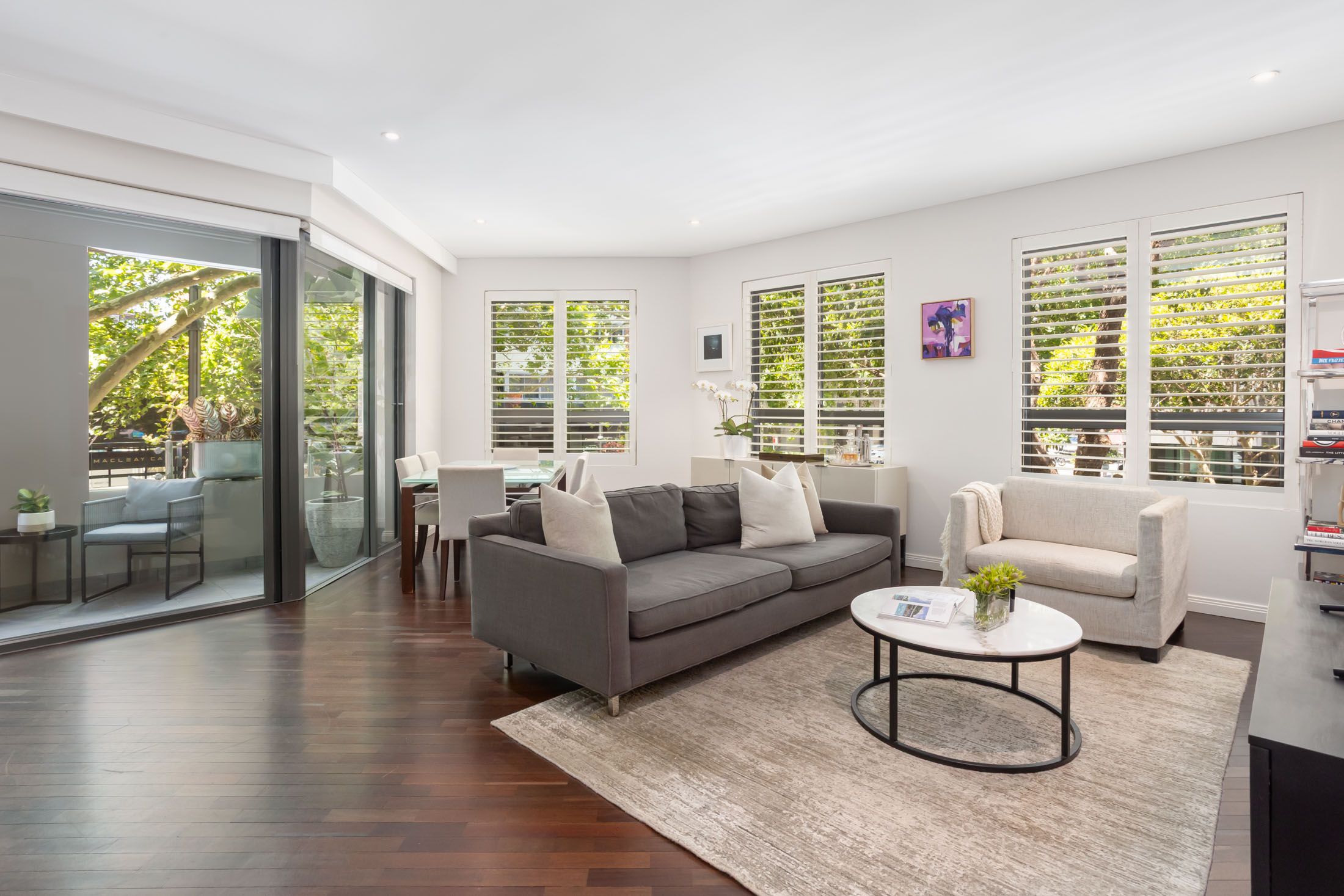 With level lift access, the home is nestled among the Macleay St treescape, its corner position providing a wonderful base in this ultra-connected locale. A wide-open living/dining area is a sumptuous space flowing to the sheltered balcony with adjacent sleek gas Calacatta marble kitchen with Miele cooking. The master bedroom is set in a tranquil wing, with b/ins and ensuite, with the 2nd bedroom equally peaceful, also with b/ins.