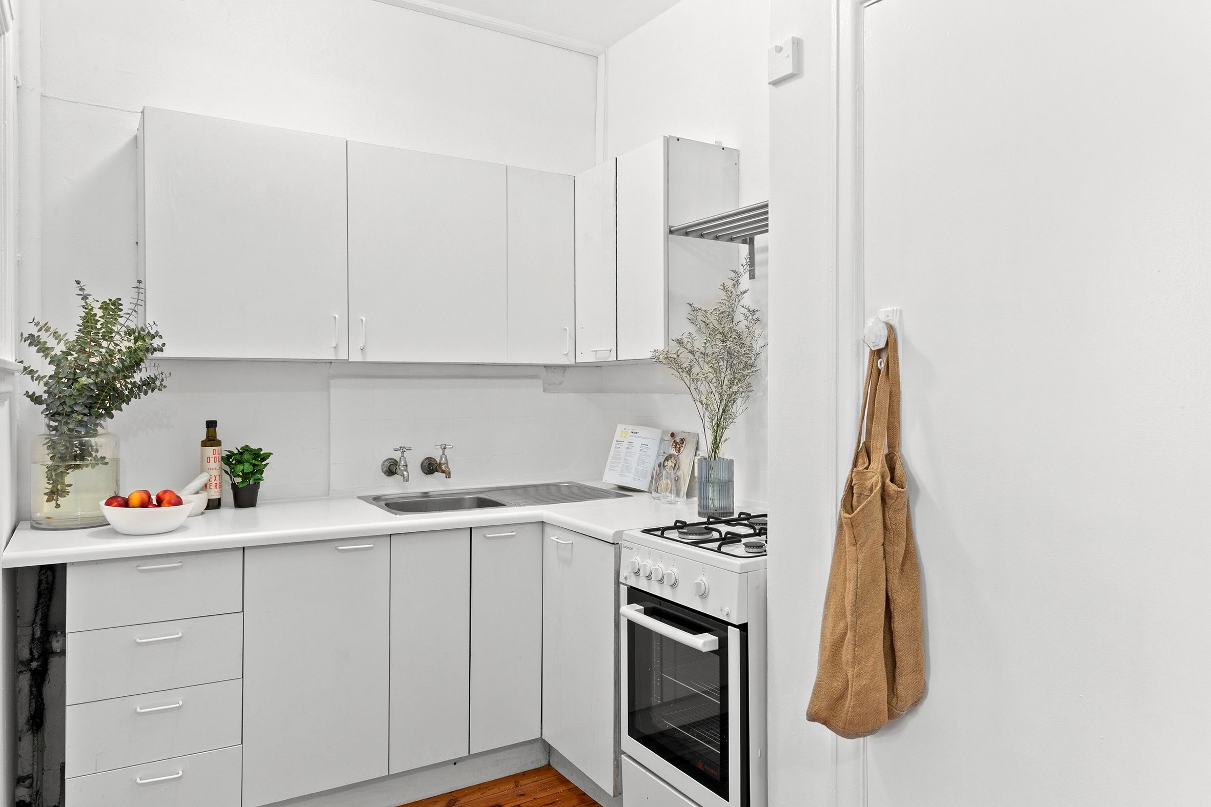 The studio includes an L shaped gas kitchen with built in storage, full bathroom, and a well proportioned living/sleeping area, providing a well considered canvas for an upgrade. Eltham is a boutique Art Deco building of just 18 residences, prized for its character and peaceful one way street setting lined with jacaranda trees.
