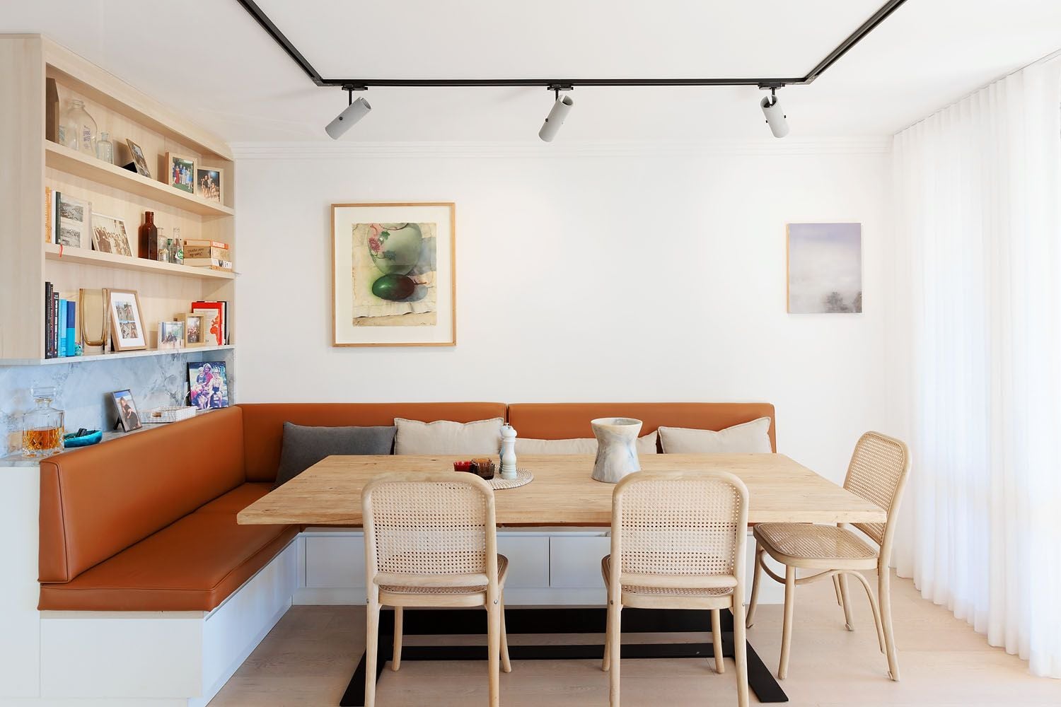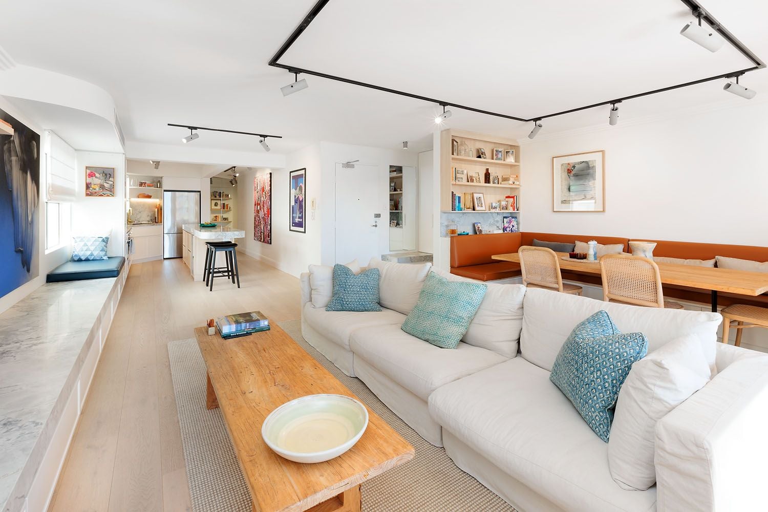 - Fine Euro oak floorboards, clever track lighting