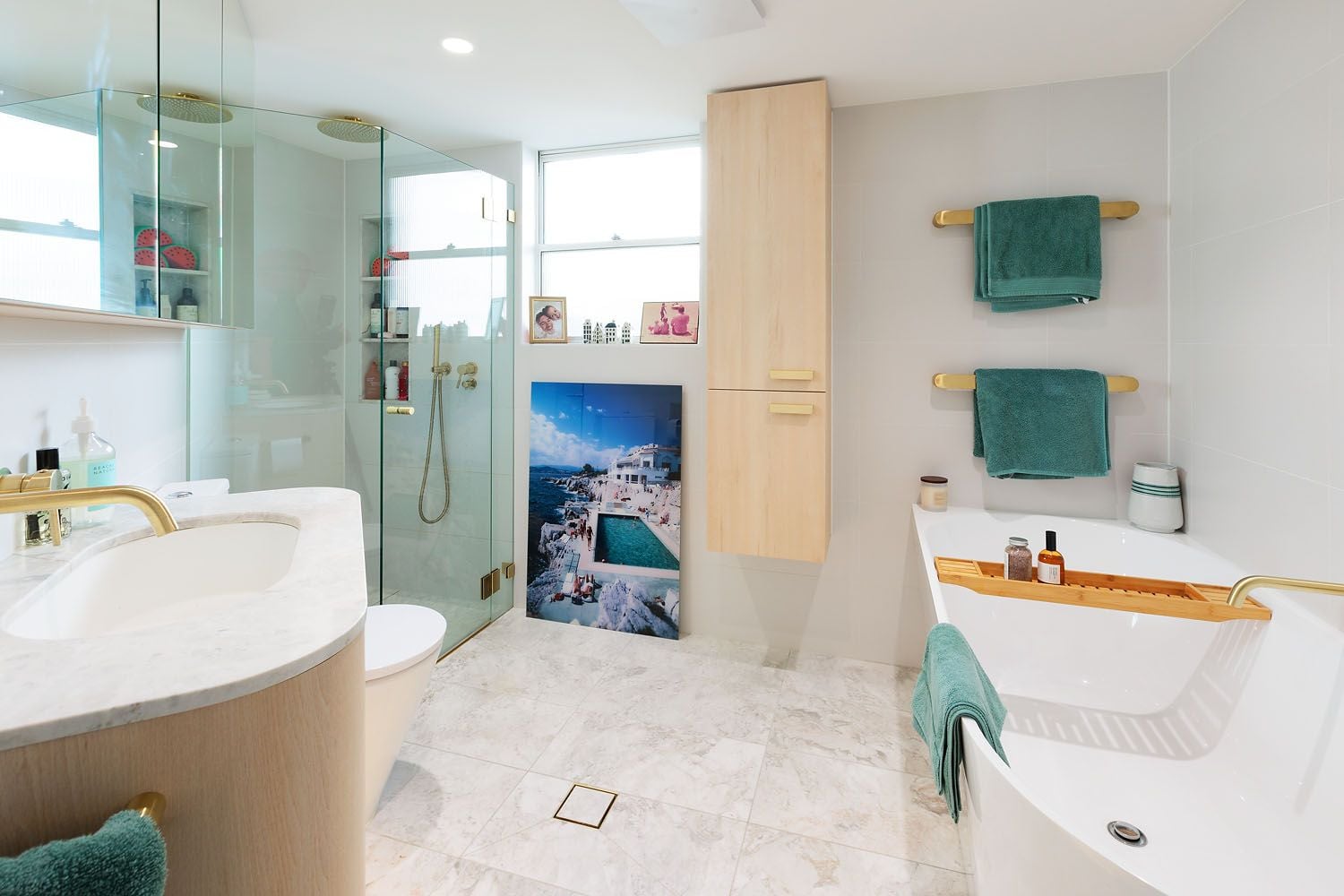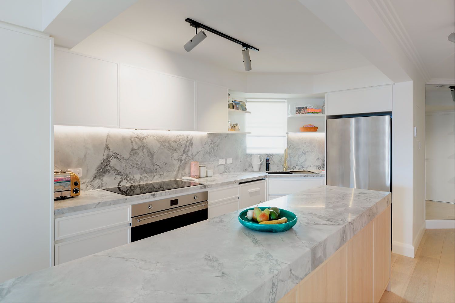 - Luxe kitchen, marble benches, Smeg cooking