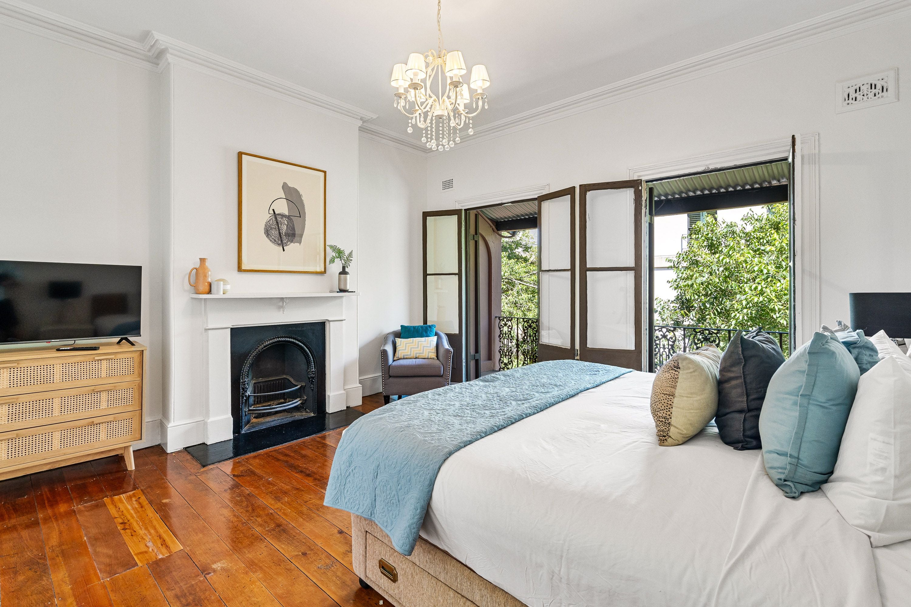- Main bedroom w/ fireplace, charming balcony