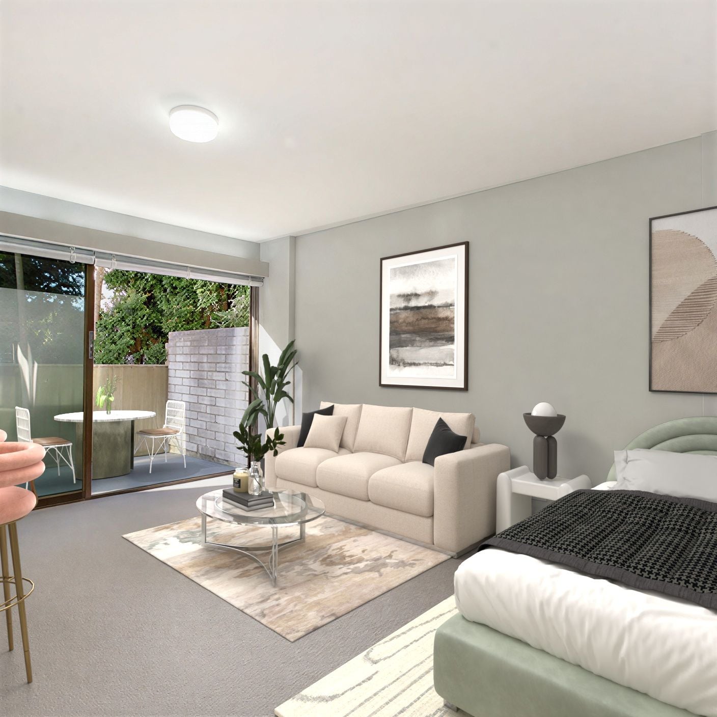 Positioned on the prized North Eastern corner of International Lodge, this spacious studio apartment is bathed in natural light. With large windows boasting a leafy outlook this apartment has a wonderful ambiance and sense of space.