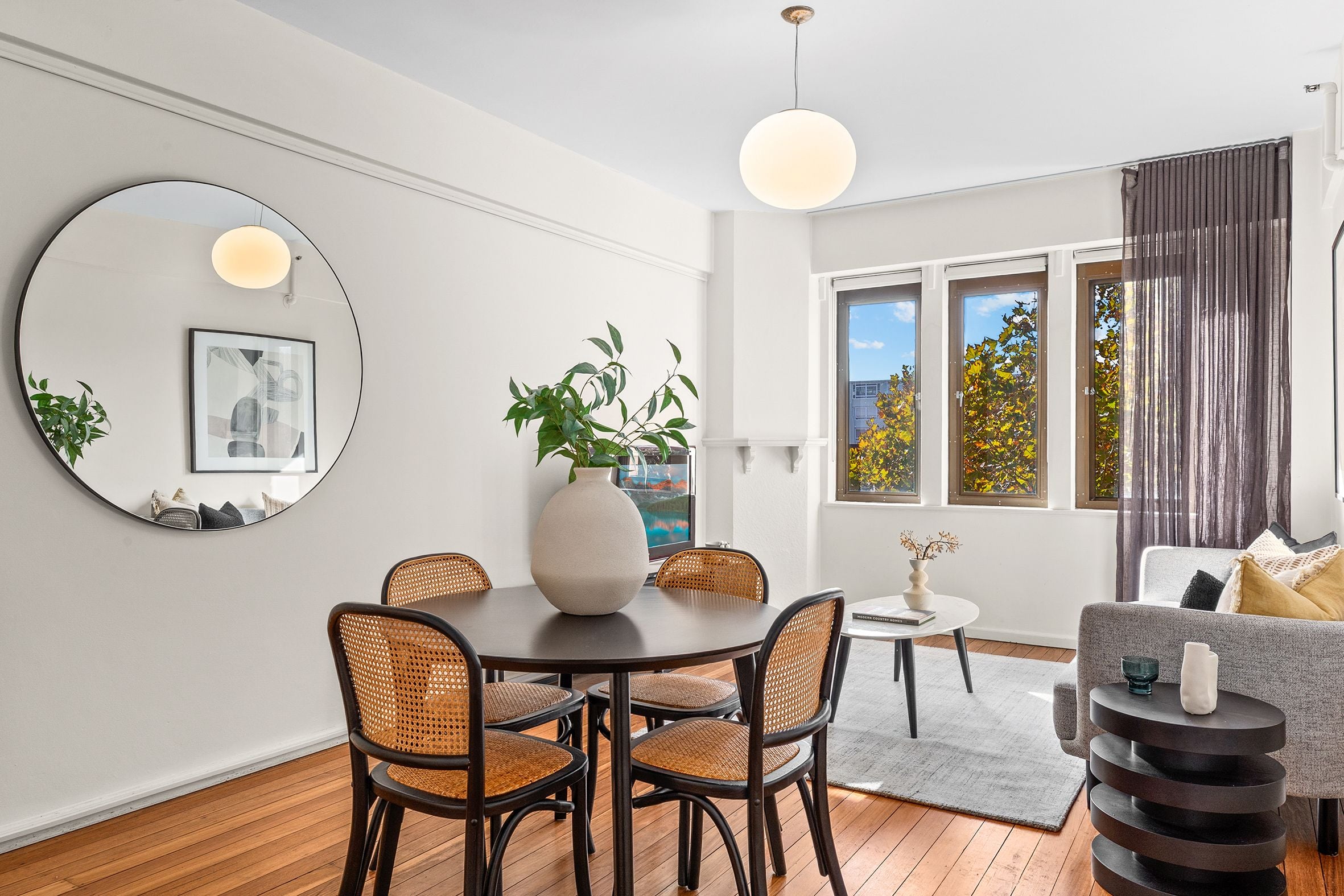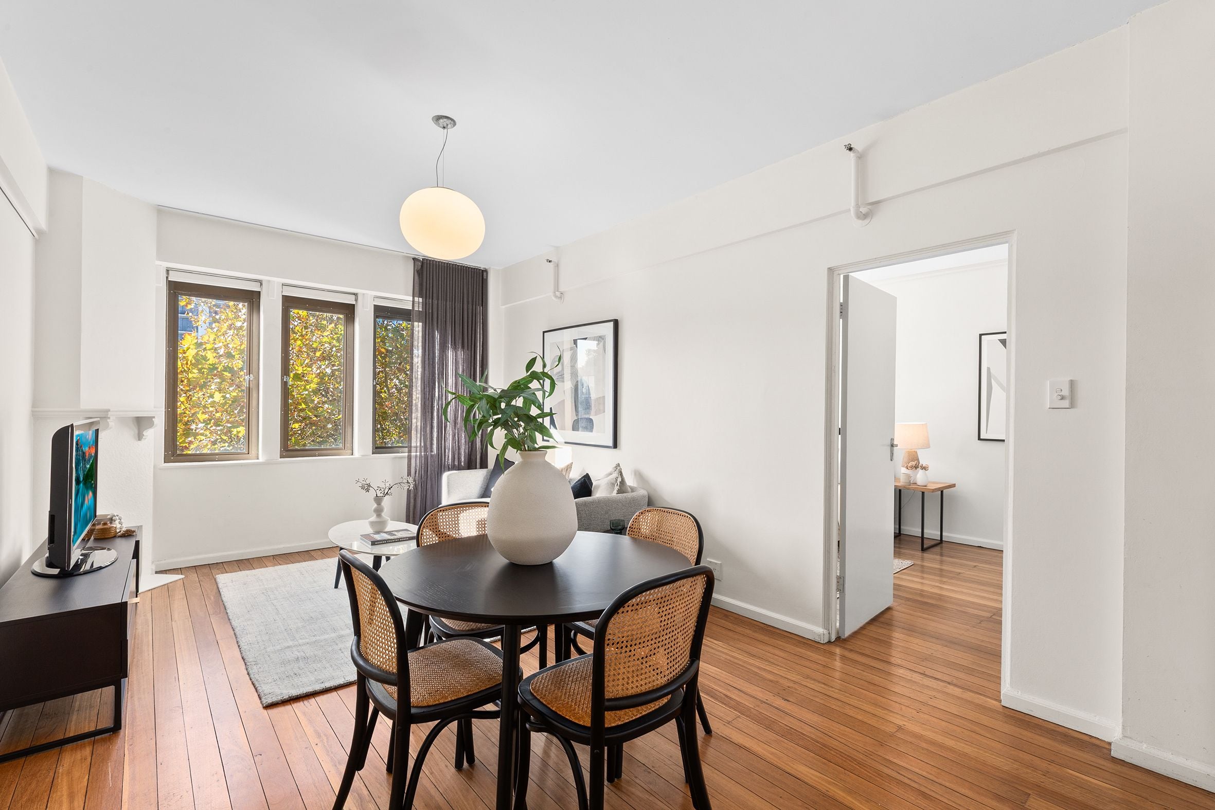Enjoying an elevated sixth-floor position within the tightly held 'Cahors', this inviting one-bedroom apartment captures tranquil leafy outlooks and beautiful eastern morning light. Defined by its classic Art Deco proportions and wide windows, the home offers a peaceful setting with excellent privacy, enhanced by having only one common wall.