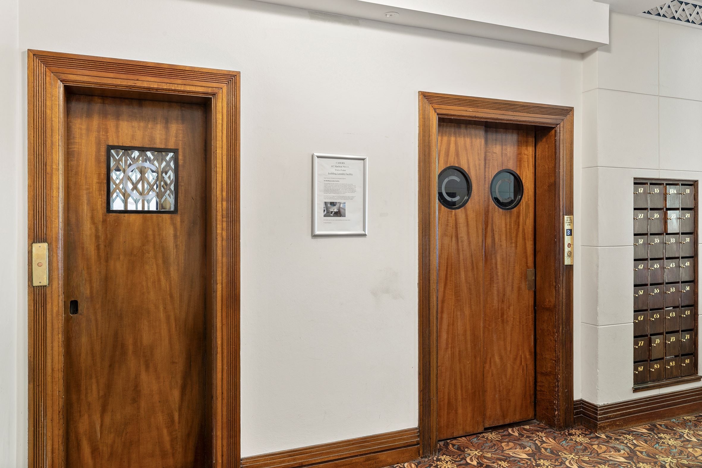 • The Cahors lobby is one of the finest in Potts Point - a double-height foyer with a mezzanine, twin wood-panelled porthole lifts, and timeless elegance